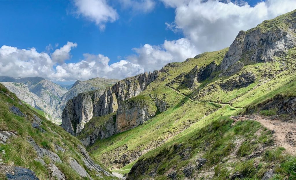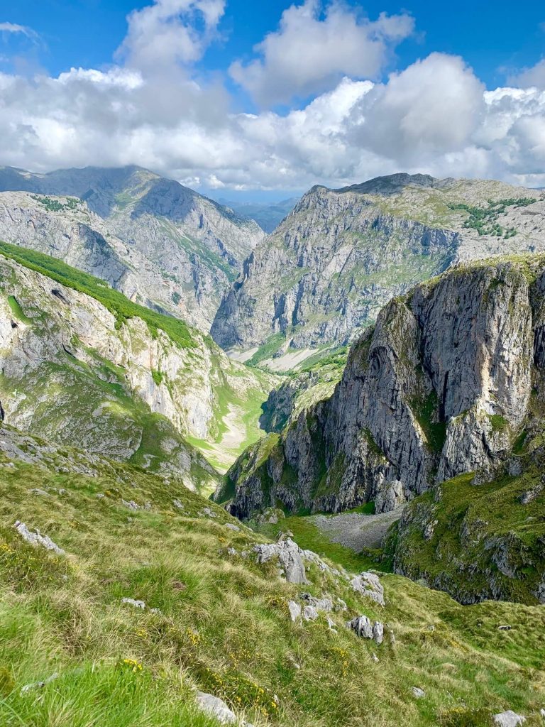 It is said the Picos de Europa were named by sailors returning from the New World- the first glimpse of the mountain ranges upon rounding the Iberian peninsula came to be called ‘the Peaks of Europe’. After seeing images of these jagged pale limestone peaks in the north of Spain they have become my latest playground for hiking. The massif belongs to the Cantabrian mountains which extend horizontally in northern Spain to almost abut the Pyrenees to the east on the border between France and Spain.